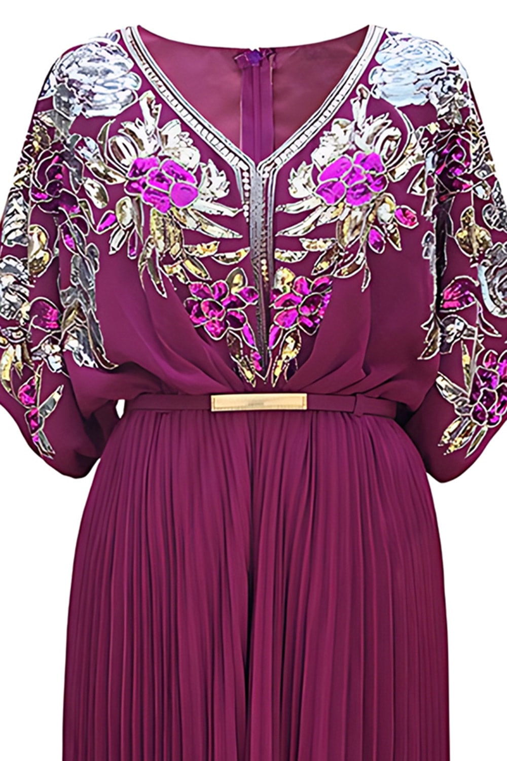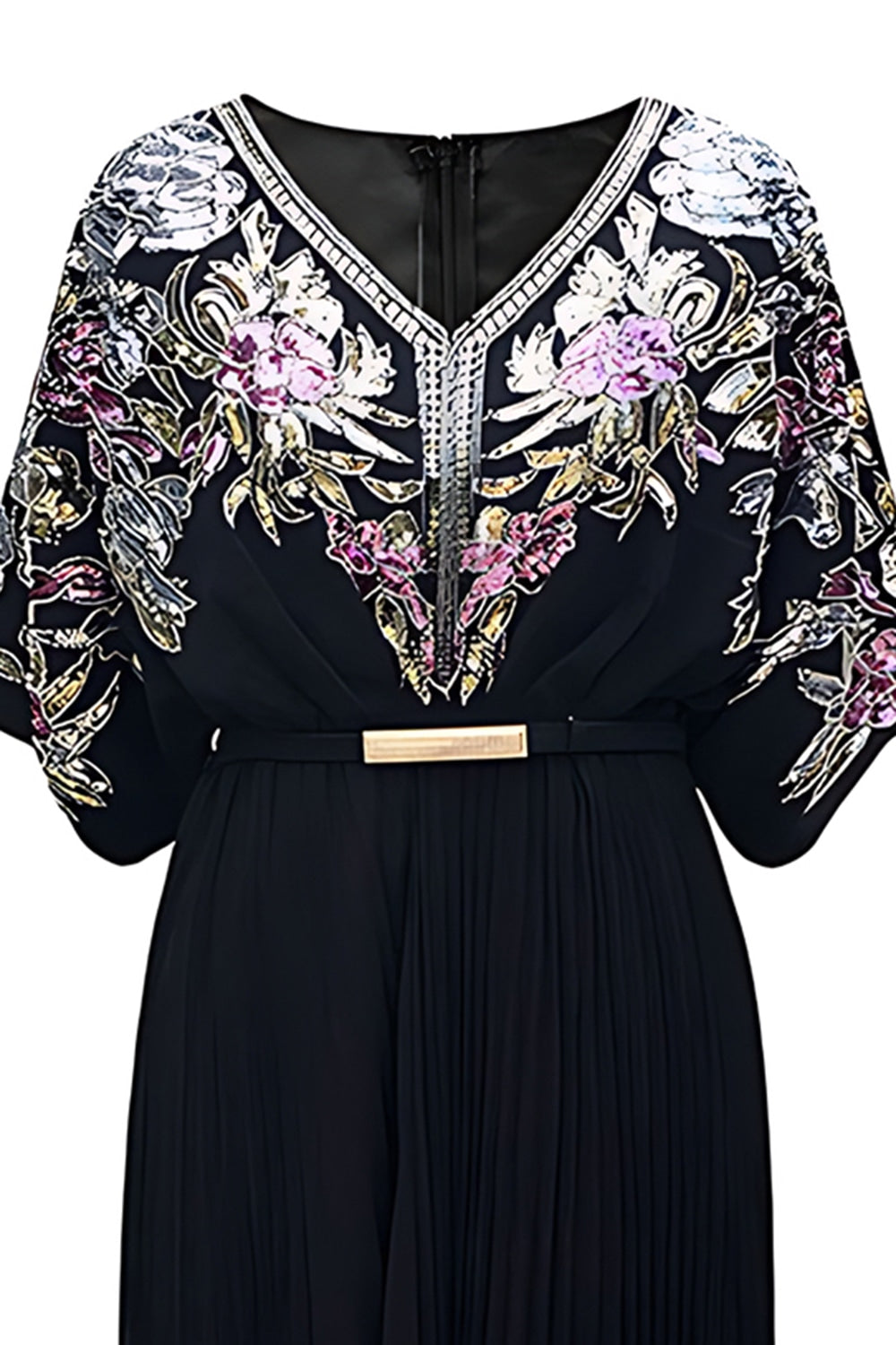 Sort sheath pailletter plisseret V-hals kjole fra 1920'erne med bælte
