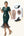 Mørkegrøn pailletfrynset bodycon kjole fra 1920'erne med 5-delt tilbehør sæt