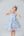 Blå printede aftagelige ærmer Flæset kort hjemkomstkjole
