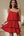 Rød lagdelt kort hjemkomstkjole med sløjfer