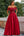 Rød En linje spaghetti stropper lang gallakjole med flæser