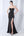 Sort havfrue fra skulderen lange ærmer rynket lang formel kjole med slids