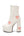 Sort PU læder Platform Chunky Block højhælede støvler med lyserøde hjerter