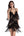Sort Print Ruffled Korset Tea Længde Gallakjole med slids