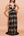Spaghetti stropper sort festkjole med frynser