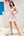 Sød en linje fra skulderen blå trykt kort hjemkomstkjole med flæser