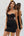 V-hals korte ærmer Sort kjole fra 1950'erne med bælte
