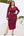Bourgogne bodycon V-hals lange ærmer plus size arbejdskjole med slids