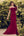 En linje V hals rød blonder plus størrelse gallakjole med delt front