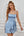 Enkel lyseblå stram homecoming kjole med flæser