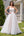 Glitrende hvid lagdelt blonde brudekjole med slids