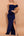 Havfrue dyb V hals blå lang gallakjole med kryds kors tilbage