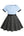 Blå A Line Hvid Polka Dots Kjole med korte ærmer