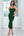 Mørkegrøn firkantet hals lang brudepigekjole med korte ærmer