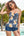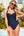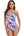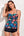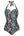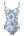 Blå trykt høj talje i ét stykke badetøj med blomster