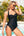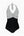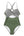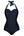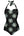 Vintage trykt sort badetøjssæt i ét stykke med strandnederdel