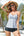 3 stk. blåt og hvidt badetøjssæt med porcelænstryk med strandkjole