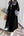 Fluffy sort imiteret pels lang overfrakke med bælte