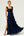 Mørkeblå Bodycon Spaghetti stropper Lang brudepigekjole med flæser slids