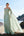 Grå Grøn Trykt Blomstret Brudepigekjole med Slids