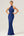Støvet Blå Havfrue Kold skulder Ruched Korset Lang brudepigekjole med slids