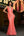 Hot pink stropløs satin korset lang gallakjole med tilbehør