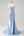 Lyseblå havfrue rynket lang gallakjole med applikeret perler