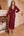 Glitrende bordeaux V-hals gallakjole med lange ærmer