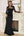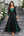 Sort blomster A-linje V-hals halve ærmer lang gallakjole med bælte