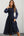 V-hals korte ærmer sort kappe balkjole med slids