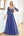 Navy A Line Aftagelige Ærmer Plisseret Lang Gallakjole