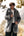 Fluffy brun imiteret pels lange ærmer kort herrefrakke med hætte