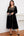 Sort rund hals lange ærmer A-linje kjole til brudens mor