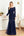 Navy A-linje blonder V-hals korte ærmer lang kjole til brudens mor