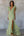 Gul havfrue V-hals lagdelt lang formel kjole med flæseslids