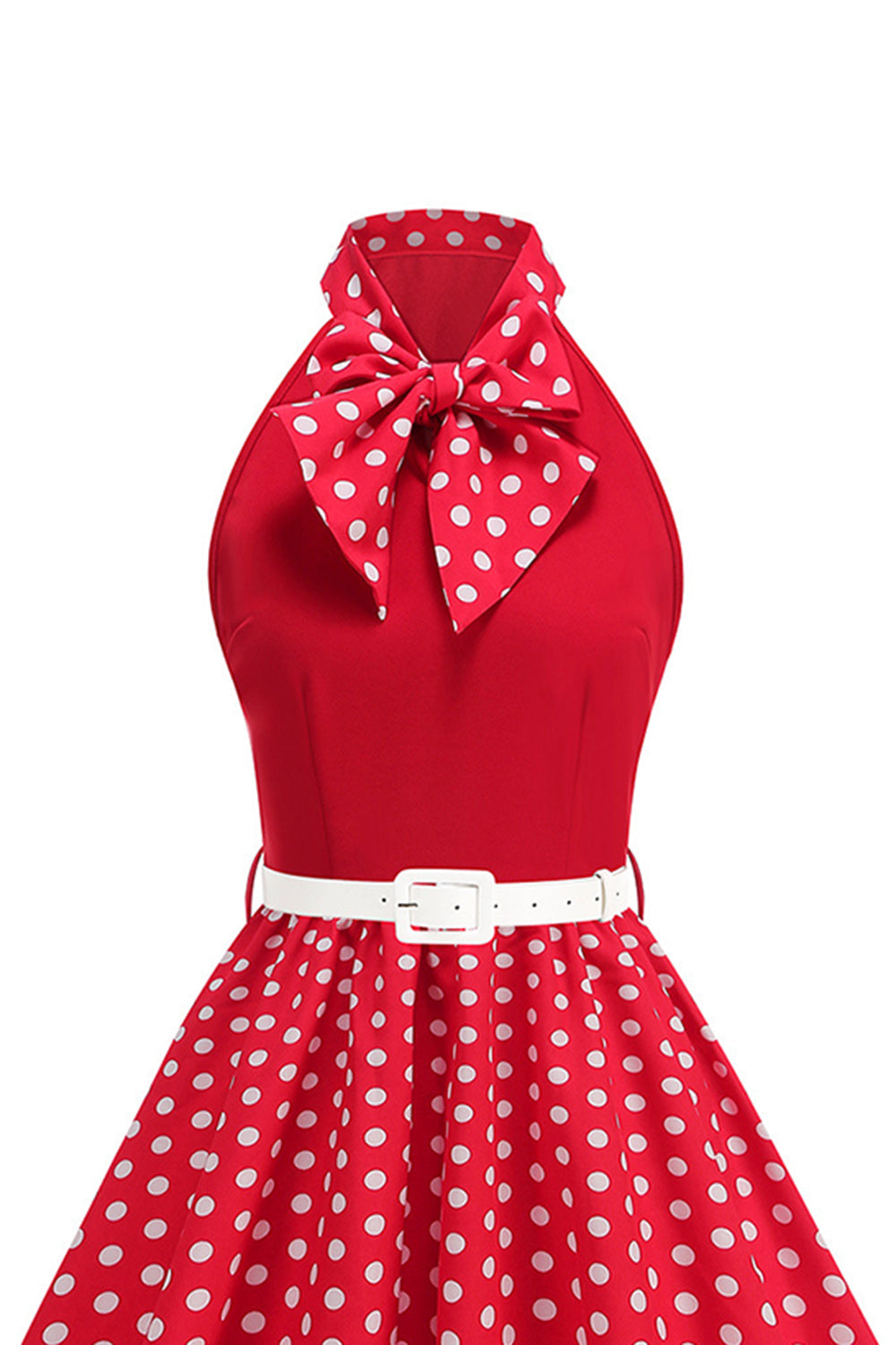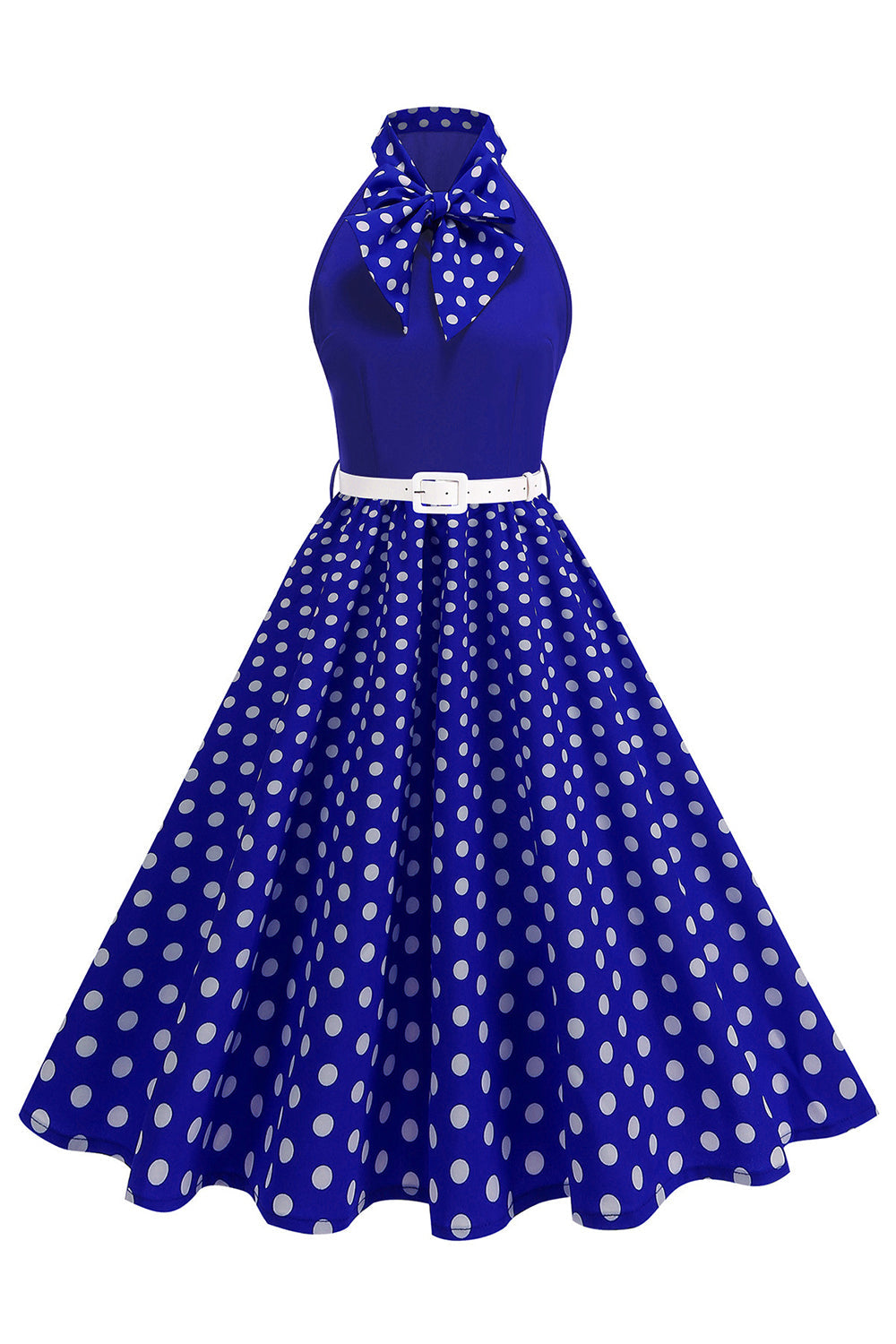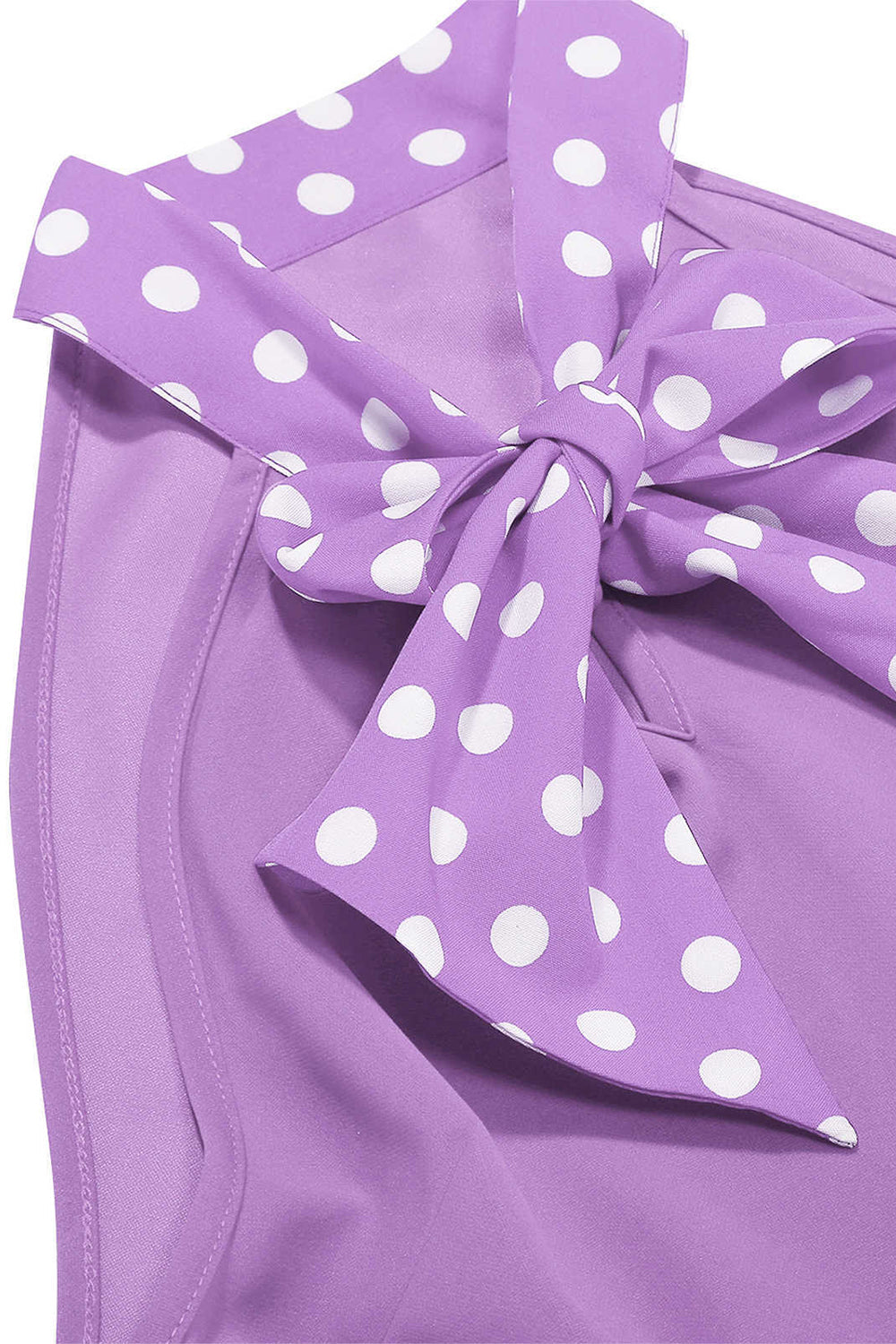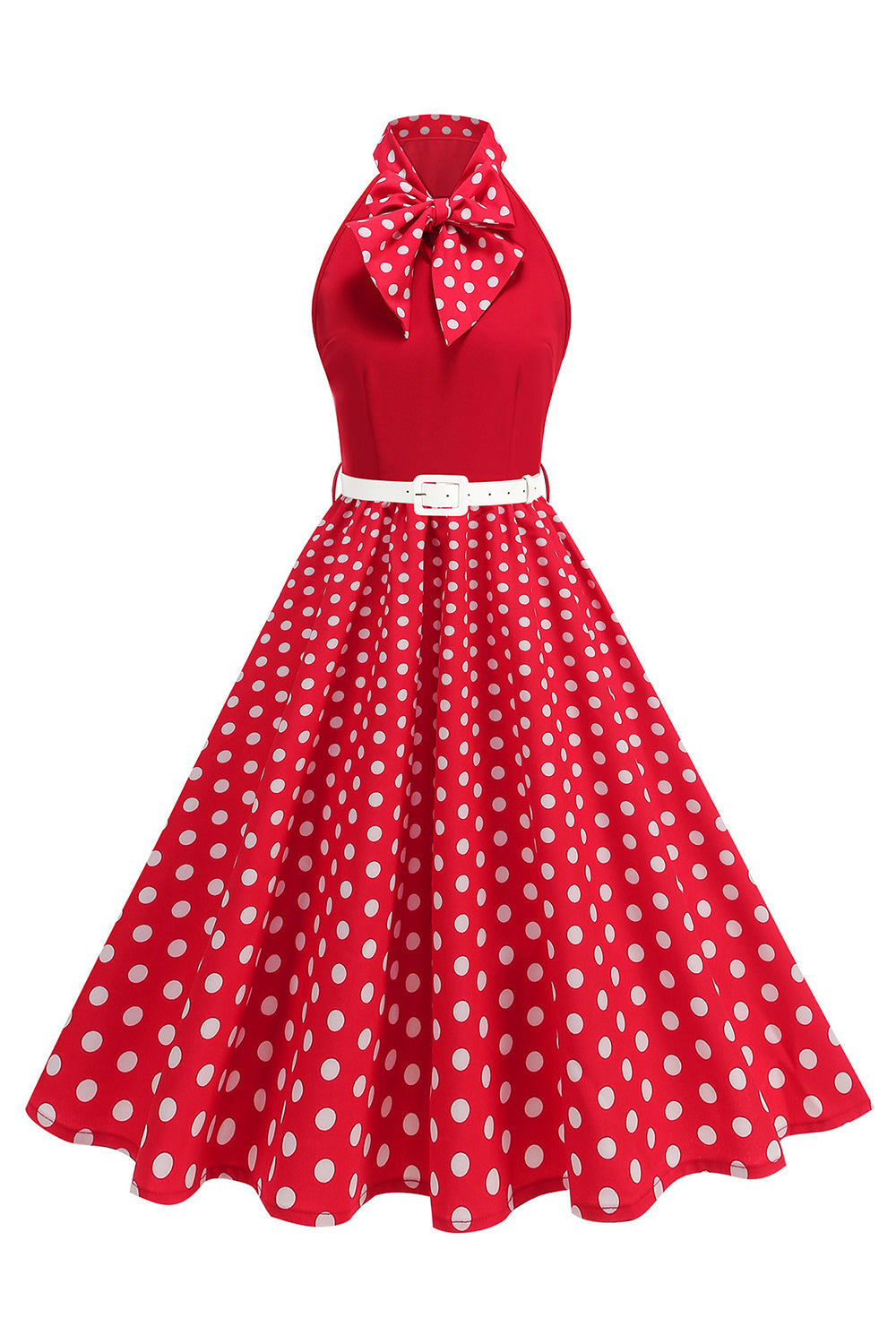 Højhalset polkaprikker Grøn En linje 1950'er kjole med sløjfe