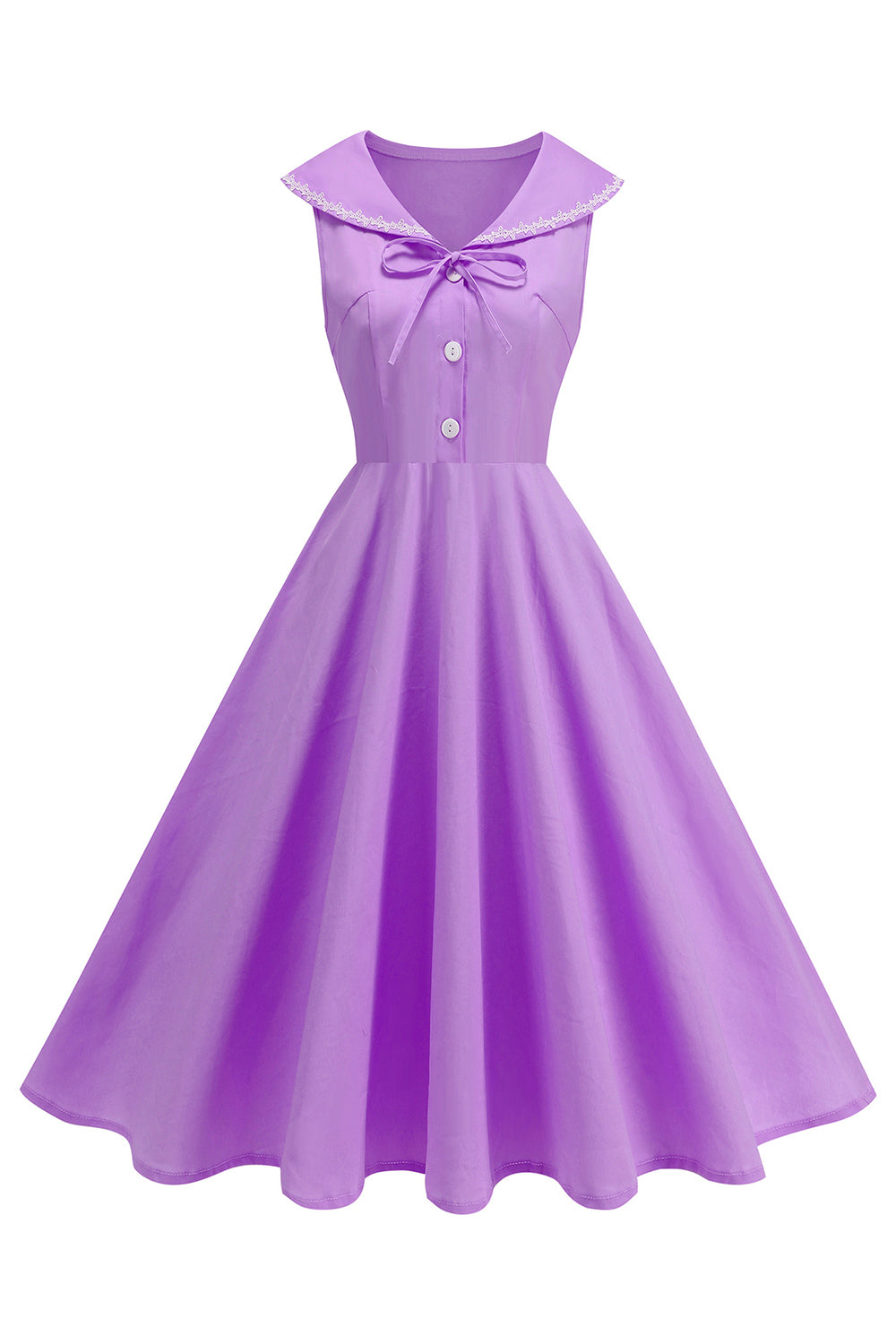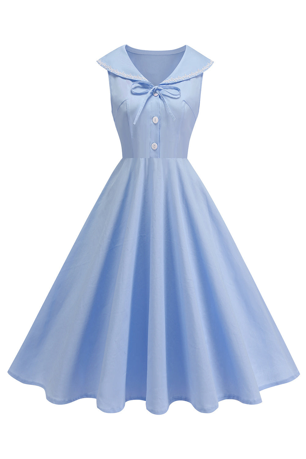 Sort V-hals A-linje 1950'er kjole med sløjfe