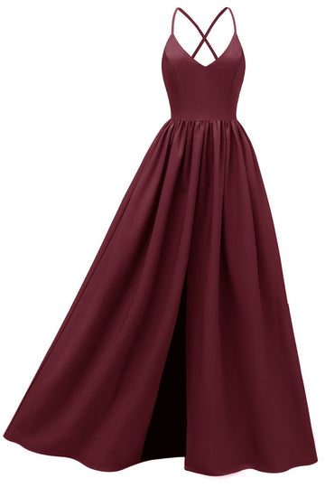 Bourgogne En Streg Spaghetti Stropper Lang Festkjole Til Fest