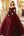 Glitrende bordeaux balkjole fra skulderen flæser tyl quinceanera kjole med pailletter applikationer