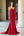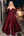 En Streg Spaghetti Stropper Bourgogne Lang Festkjole med Delt Front