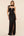 Glitrende sort havfrue stropløs satin lang balkjole med rhinsten