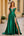 Mørkegrøn A Line Spaghetti Stropper Satin Gallakjole