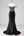 Glitrende sort pailletter havfrue stropløs lang militær boldkjole