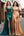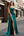 Glitrende mørkegrøn kappe pailletter plisseret lang gallakjole med lårsplit