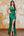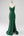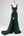 Mørkegrøn kappe glitrende pailletplisseret lang gallakjole med lårsplit