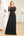 Charmerende A Line Firkantet hals Sort Korset Gallakjole med applikationer