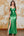 Grøn A-line spaghetti stropper Lang gallakjole med glitrende pailletapplikationer