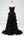 Stilfuld A Line Stropløs Sort Pailletter Lang gallakjole med flæser