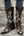 Retro sort frynser bælte spænde chunky lav hæl cowgirl støvler