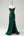 Glitrende mørkegrøn havfrue stropløs perlebesat korset lang balkjole med slids